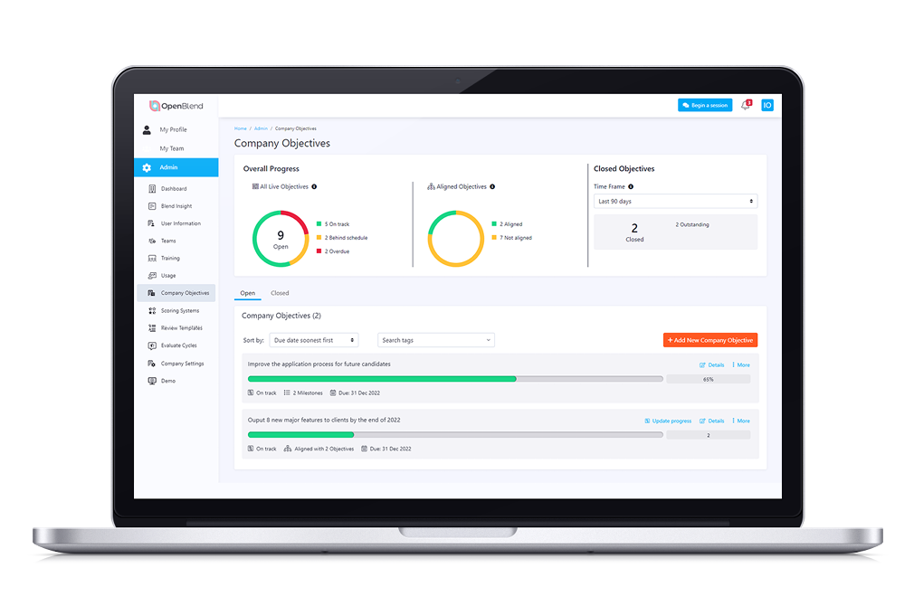 Every employee is different: OpenBlend’s approach to setting and discussing performance goals allows managers to tailor each stage of the goal setting process to the individual. Unlocking better performance, boosting employee engagement and increasing productivity.